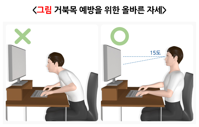 3. 근육 불균형: 목 앞쪽 근육은 짧아지고 뒤쪽 근육은 늘어나는 근육 불균형이 생기면 발생 가능성이 높아집니다.