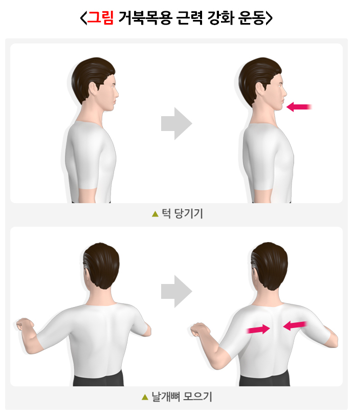 2. 근력 강화 운동: 약해진 목과 등 근육을 강화합니다.