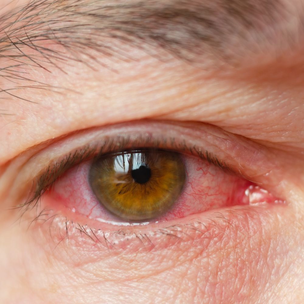 - 시야가 흐려짐(분비물 축적이나 눈물로 인한)